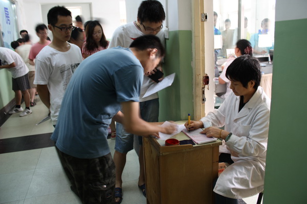 6月18日,校医院开始办理毕业生体检、注销医疗证及报销医疗费手续。今年共有4556名毕业生需要办理该手续,其中本科生3129人,研究生1427人。办理时间从6月18日开始至6月21日。截止到6月19日14:30,共有2165人已经办理体检,约占总人数的48%。