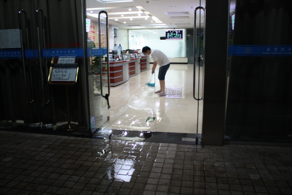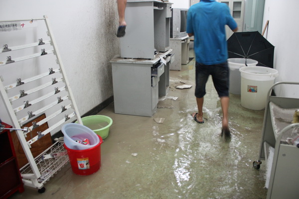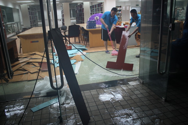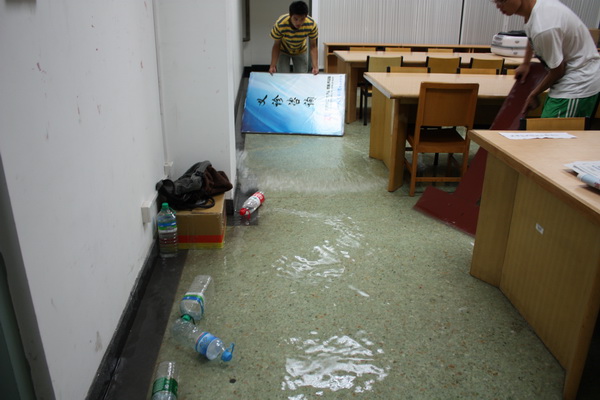 7月21日,北京遭遇61年来最强降雨。晚上8点左右,图书馆地下一层通道积水严重,信息中心服务大厅墙壁及图书馆601墙壁分别渗水、漏水。信息中心启动紧急预案,安排职工、学生连夜开展排水排污工作。校党委书记王芳两次亲临现场指挥,对排水排污工作进行具体安排。师生齐心协力,尤其是在污水倒灌区域,臭气刺鼻,大家克服困难,听从指挥,有条不紊,关闭涉险位置电源,清除排水口杂物,确保了机房供电设备、服务器等设备的安全。由于抢险及时,除了部分区域家具被淹以外,没有造成较大损失。