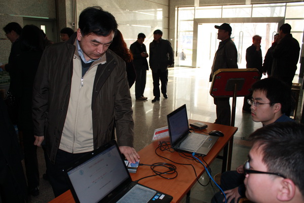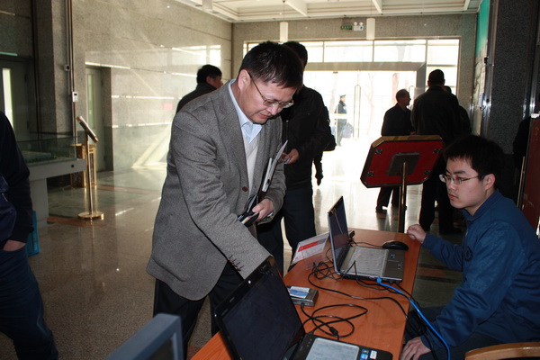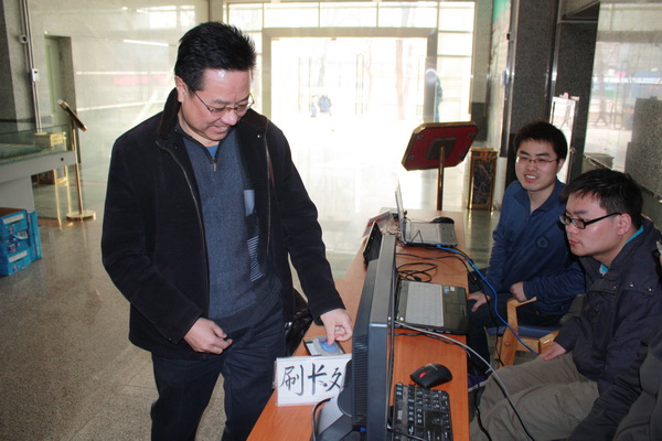 4月7日,我校召开第五届教代会暨第七届工代会第四次会议,会议采用数字化签到方式。会前,信息中心先将177名代表的信息导入自行开发的会议签到及实时显示系统,会议当天,各位代表在签到处(读卡器端)用校园一卡通进行刷卡(忘记带卡可以输入工号)即可实现签到,代替了原有的排队手工签字方式,节省排队时间,提高了签到效率。同时,会议的详细出勤状况通过校园网可以在会场及校内实时显示,便于会务组织人员及时、准确地掌握出勤状况,实现了会议签到的数字化、信息化、网络化。