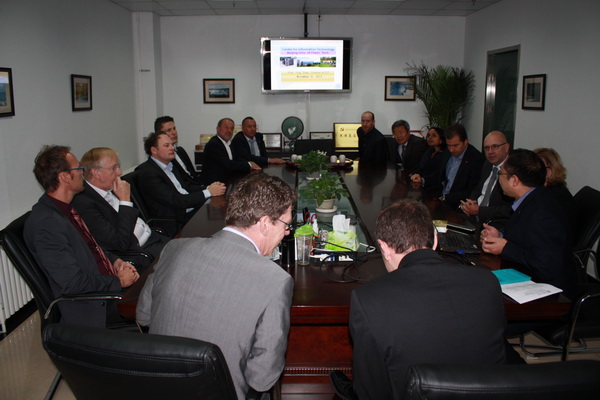 11月4日上午,由荷兰高等教育国际交流协会Freddy Weima主任、荷兰教育部教育国际化项目负责人Robin vanIjperen先生率领的荷兰高等教育代表团一行18人对北京化工大学进行了友好访问,并到信息中心进行了参观和交流。信息中心主任赵英教授向荷兰客人介绍了信息中心的发展历史、网络和信息化建设、数字化校园建设、未来新校区信息中心的规划等,并和荷兰客人进行了友好交流。最后,荷兰客人参观了信息中心服务大厅和数据中心机房。