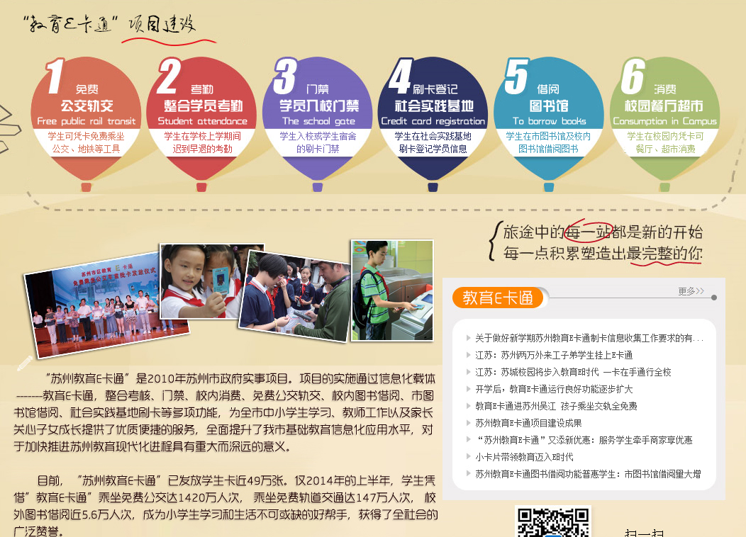 中国教育信息化网推出“苏州经验——以教育信息化引领教育现代化”专题。其中,介绍了“教育E卡通”、“未来教室”、“教师团队建设”等内容。