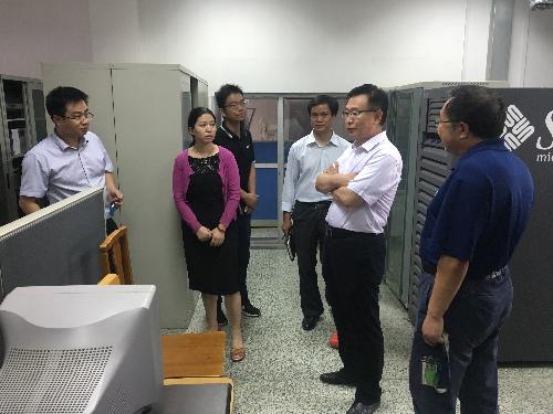6月27日下午,李新军副校长带队到信息中心调研网络安全和信息化工作。校网络安全办公室主任汪中明、校信息化建设办公室主任任钟旗、信息中心主任赵英、副主任杜昌顺陪同考察。李校长首先考察了信息中心图书馆地下一层的数据中心机房、图书馆六层的交换中心和托管机房以及图书馆机房的运行状况,随后在信息中心会议室与信息中心全体在校人员进行了座谈和交流,会议由信息中心赵英主任主持。
