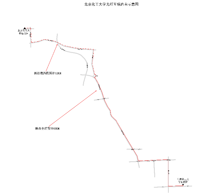为了高速联通两个校区,学校专门铺设两个校区之间的高速光缆,从新校区,途径虎峪路、南涧路、京银路、西关环岛、京藏高速、百葛桥、上清桥、健翔桥、北辰桥、安慧桥、安定路,途径60公里,最终抵达北京化工大学东校区。