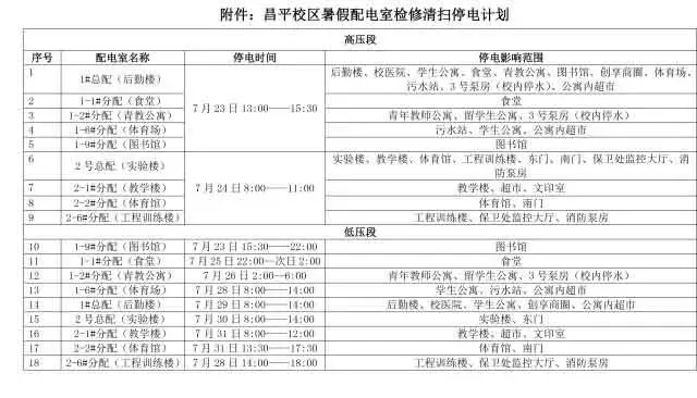 根据昌平校区暑期停电安排,7月23日至31日期间,各楼宇相继停电,楼宇内的网络交换机也将断电,故该楼宇的校园网服务也将暂停,待供电恢复后校园网也随之恢复,敬请广大用户谅解。