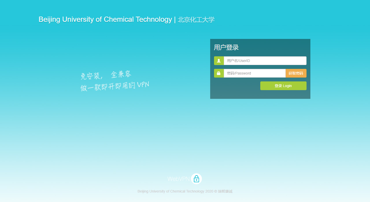 图1 学校VPN系统登录页面(http://w.buct.edu.cn)