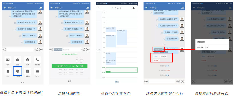 丰富的群工具:约时间,快速约定日程安排