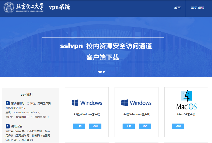 VPN客户端下载页面(http://vpn.buct.edu.cn)