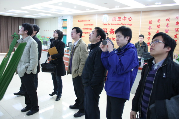 3月21日上午,北京林业大学信息中心主任黄国华博士、党政办沈芳副主任来到我校信息中心参观,就办公自动化(OA)系统、校园门户、网站群、一卡通等业务系统进行交流。