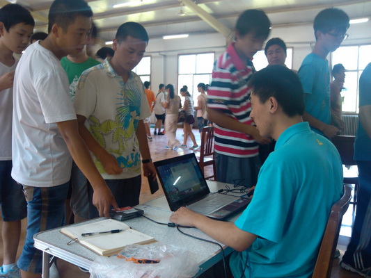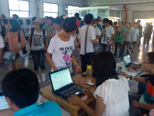 为了提高肺结核病人的发现率,同时作为今年“迎新”工作的一部分,我校北区办和昌平区结核病防治所于8月29日下午在北区艺术团活动中心对昌平校区新入学的4400余名本科生和研究生进行了“肺结核筛查”工作。筛查工作于下午一点开始,三点结束,历时两个小时。与往年筛查工作不同的是,本次筛查工作采用我校信息中心自主研发的会议签到系统。待查新生先注射疫苗,然后使用校园卡在会议签到系统上进行刷卡确认。与此同时北区办负责老师可通过会议签到系统的统计端实时掌握筛查情况。