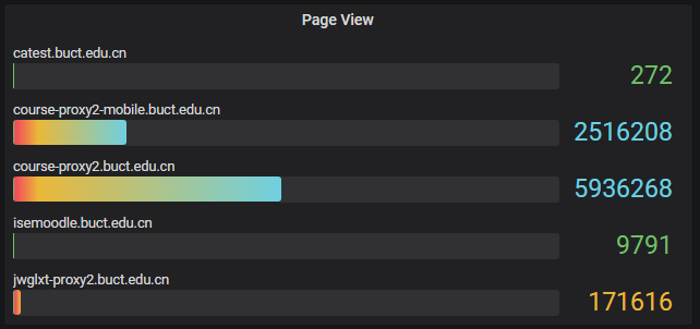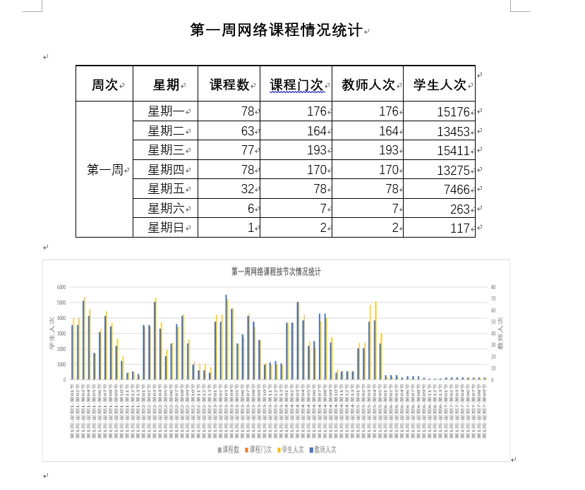 通过统计,2月17日开学第一天,访问校内教学教务系统的页面总累计访问量(PV)为:电脑端5,936,268次,优慕课APP为2,516,208次。17日下午15时21分,反向代理服务器同时在线访问人数为9917,达到当日最高峰。进一步分析数据,反向代理服务器分担了在线教学综合平台85%左右访问请求,在保障网络安全的前提下,确保了在线教学系统服务器在如此大访问量的情况下系统没有出现宕机情况。