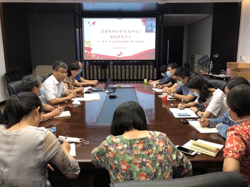 根据学校党委《关于认真组织学习<习近平谈治国理政>第三卷的通知》精神,信息办于8月21日下午在图书馆5层会议室组织首次专题学习,信息办党支部书记杜彬主持会议,中心主任李征及全体党员、学校第二巡察组相关老师参加会议。