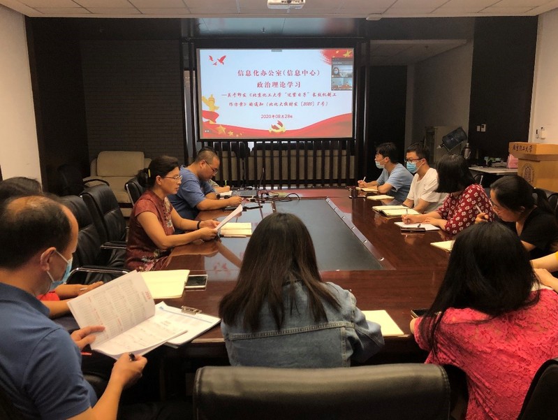 为贯彻落实理论学习工作安排,根据《关于做好教职工集中理论学习组织工作的通知》精神,信息办于8月28日下午在图书馆5层会议室组织专题学习,信息办党支部书记杜彬主持会议,中心全体教职工参加会议。