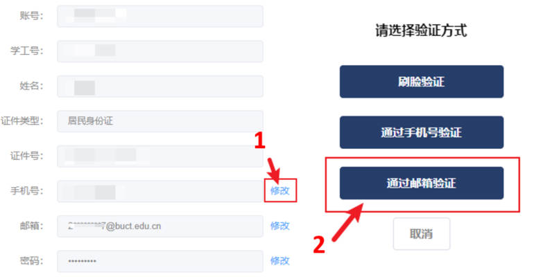 进入个人认证中心后会提示三类验证方法,请选择邮箱进行验证,具体操作流程如下。