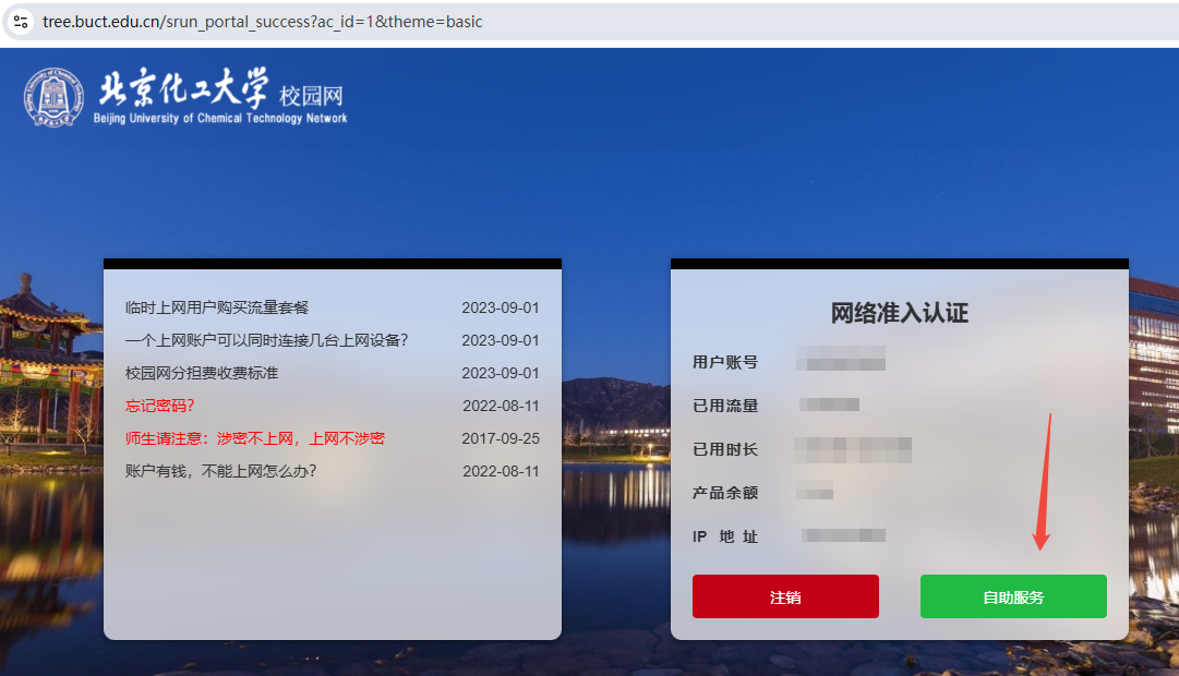 浏览器登录tree.buct.edu.cn,点击自助服务